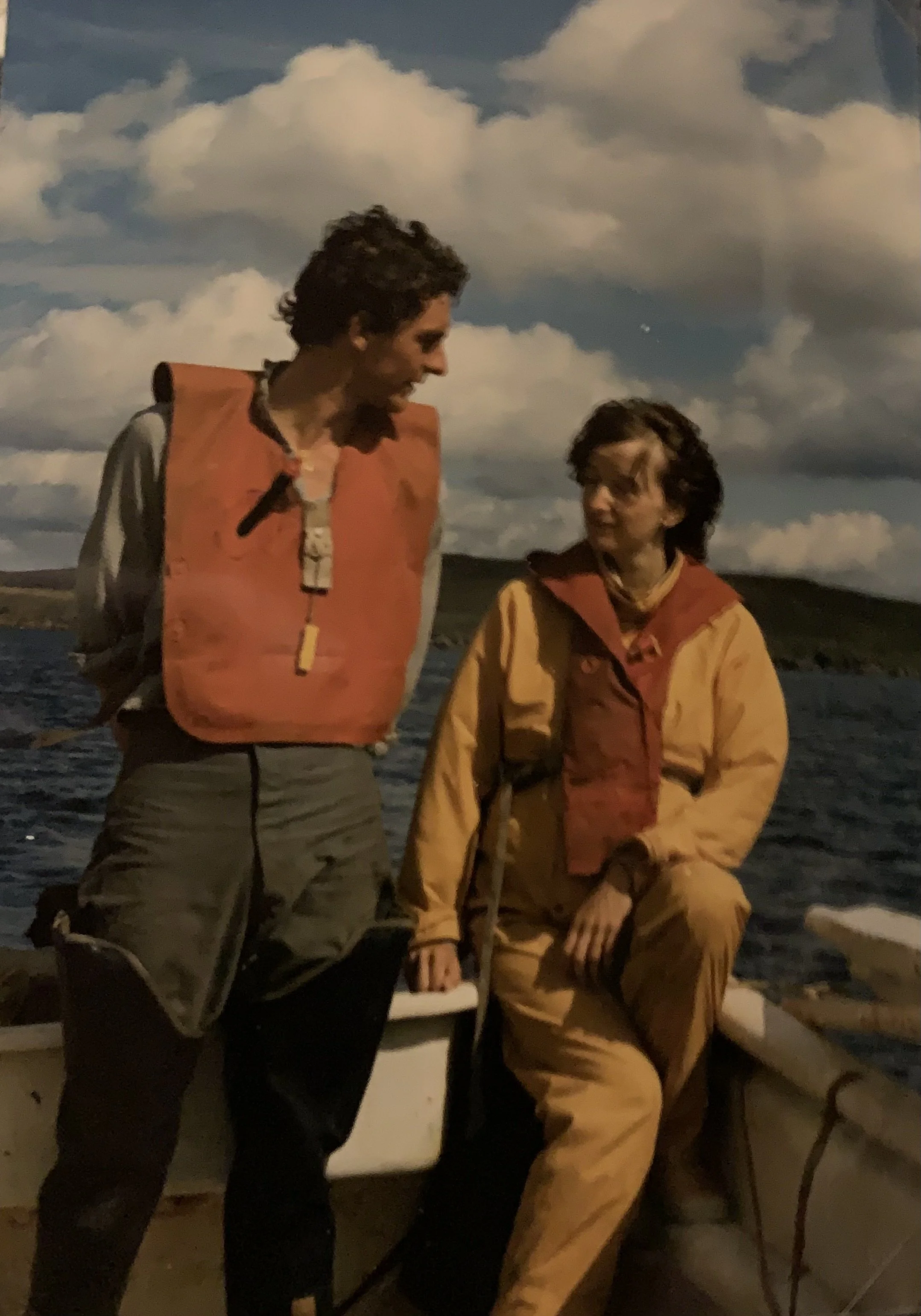 That’s me talking my future wife Sheileagh out in a boat, when I was a salmon fisher. In those days, it was meant to spell bad luck to take a woman out in a boat. It brought us good luck ever since.